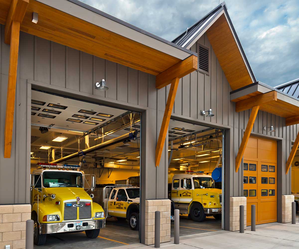 The Rapid Valley Fire Station project involved the construction of a wood-frame structure with a metal roof, covering a total area of 16,000 square feet. The facility is designed to meet the operational needs of the fire department and includes six truck bays, sleeping quarters, a training room, an exercise room, and a fully equipped kitchen. These features provide both functional and comfortable spaces for fire station personnel, supporting their readiness and well-being.